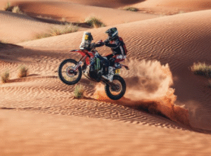 Although Skyler Howes DNFed Stage 2 of the Rallye du Maroc, his Monster Energy/ HRC - Honda Racing Corporation teammates Tosha Schareina and Ricky Brabec dominated the day with a one-two finish. After a demanding opening day, riders faced 307 km against the clock today, with the majestic Erg Chebbi dunes near Merzouga featuring prominently, not once, but twice. The first of four loops out of Erfoud this week offered a mix of challenges: 33% sand, tailor-made for the dune specialists, but with rocky sections and broken tracks ready to test their focus and endurance. Schareina set the pace early, determined not only to claim his first stage win of the week but also to claw back time from leader Daniel Sanders, who started the day 4’28” ahead. Despite limited visibility, Schareina came alive in the dunes of Erg Chebbi and secured the stage victory, slashing his overall deficit to just 43 seconds.