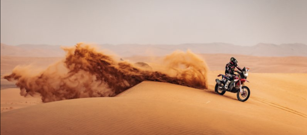 “It was a long two days,” concedes Campbell. “Yesterday, it was quite high speed and had some dunes at the end. I got through the rocks, it was a little tricky navigation early yesterday and I did a pretty good job of getting through it. Today, it was all dunes and really soft ones, so I just had to push and do my best. I made it here and I think we’re in a good position to keep fighting for the next couple of days. Today, I was pushing through the really soft white dunes and they weren’t so big, but really soft, so I had to get off a couple of times and flip the bike around and make my way through there. I’m still enjoying it and having a great time out here.”