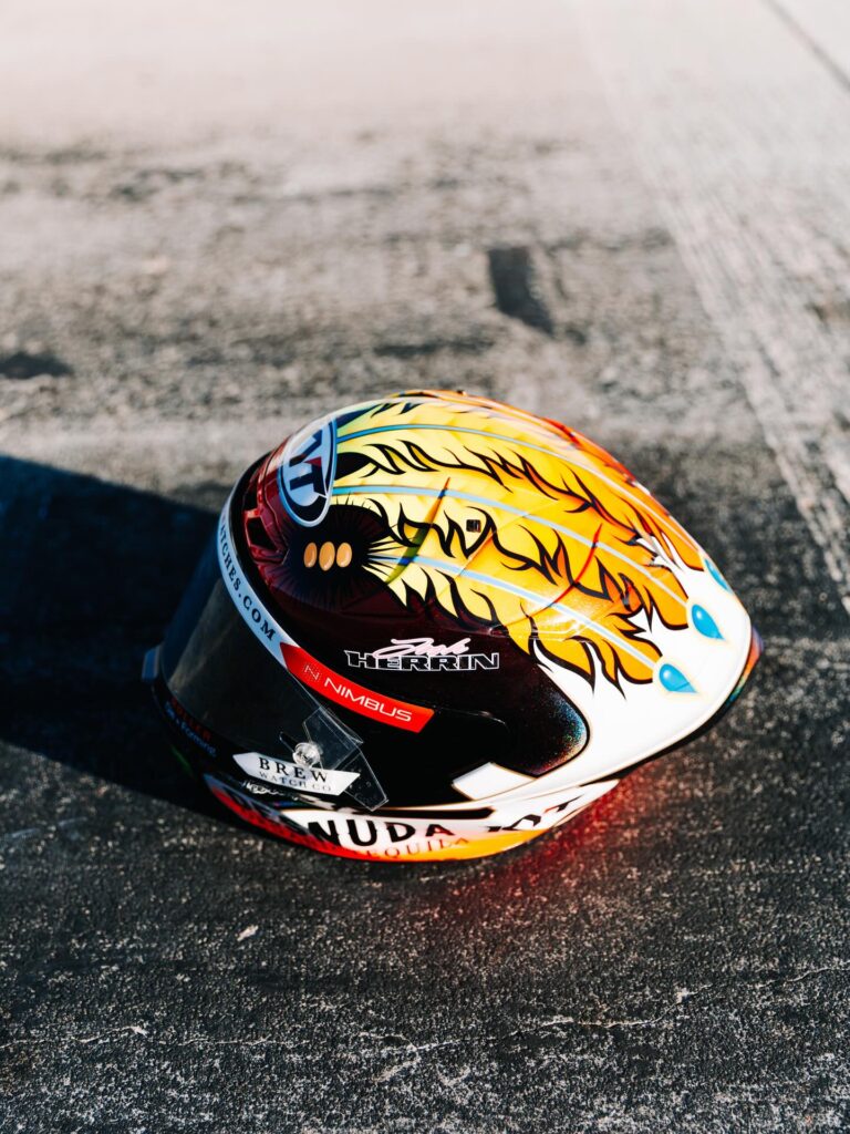Capping his history-making ride was Herrin’s custom KYT helmet. “I can’t describe what it feels like, especially to be wearing this helmet that Troy Lee painted himself to honor Scott Russell, and to have Scott share the helmet on his social media and stuff. It’s a special day. It just doesn’t feel real.”