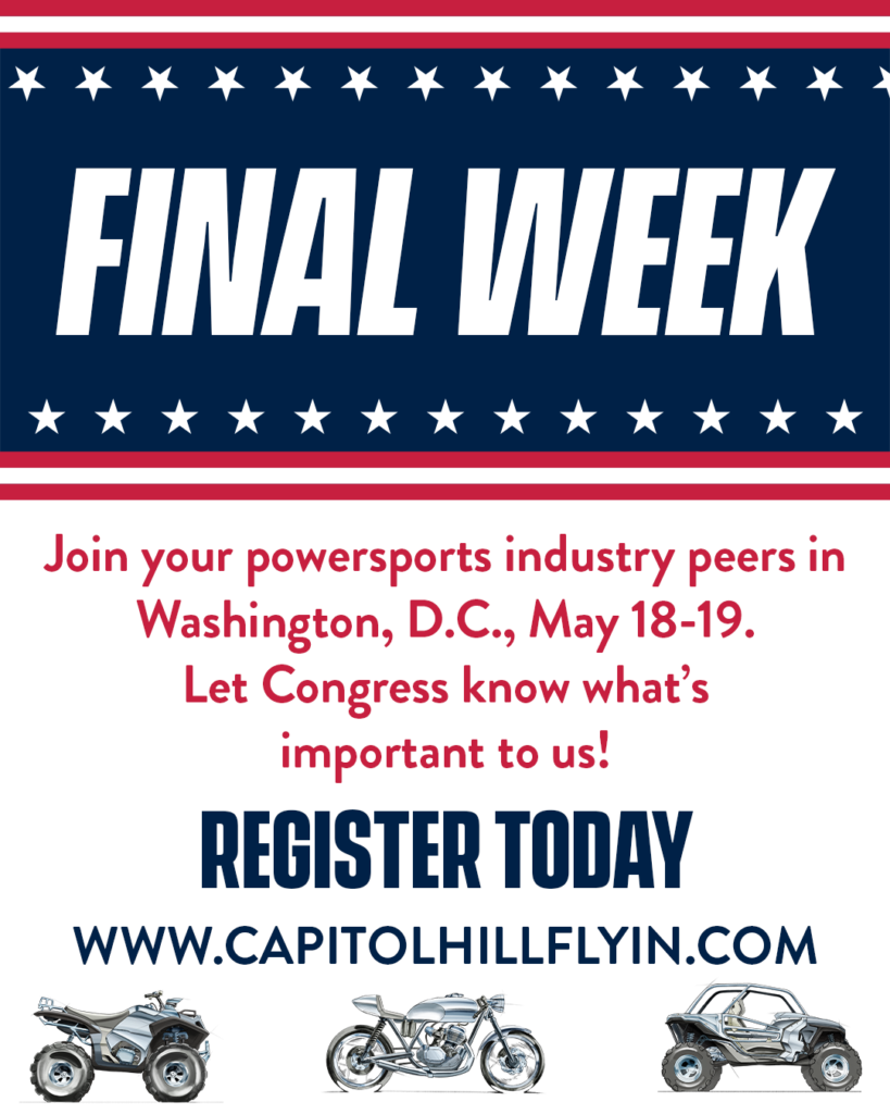 The last day to register for the Motorcycle Industry Council’s 2026 Capitol Hill Fly-In is April 21, 2026. Speak to your elected officials and protect your rights… or shut up and let the government tell you how it is going to be. Just ask racers in Wisconsin about AB 880 getting black-flagged!