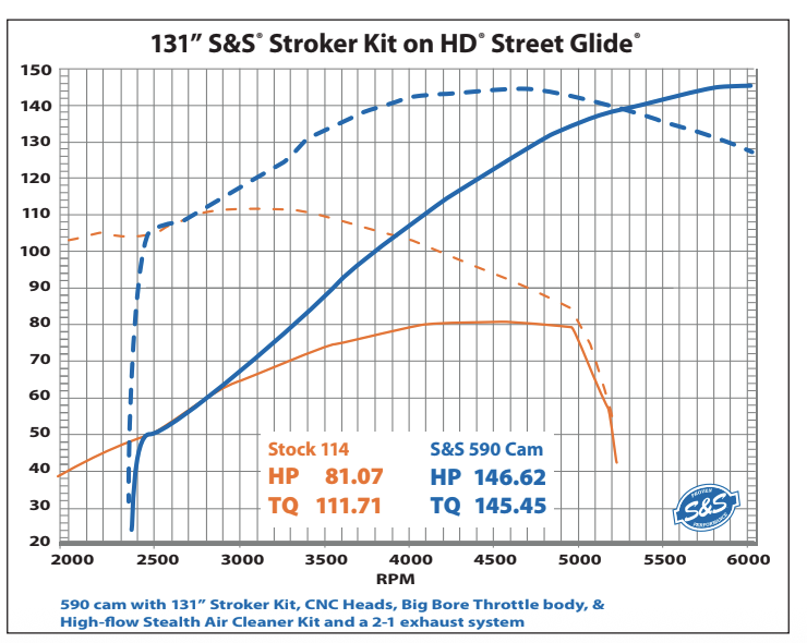 Bigger is better! That’s the American way, so it figures the patriots as S&S Cycle would offer revolutionary performance in the M8 power struggle. Billed as “the perfect sleeper package” the 131 ci kit for 2017 and up M8 models pumps up performance without having to machine the cases. The Dyno doesn’t lie!