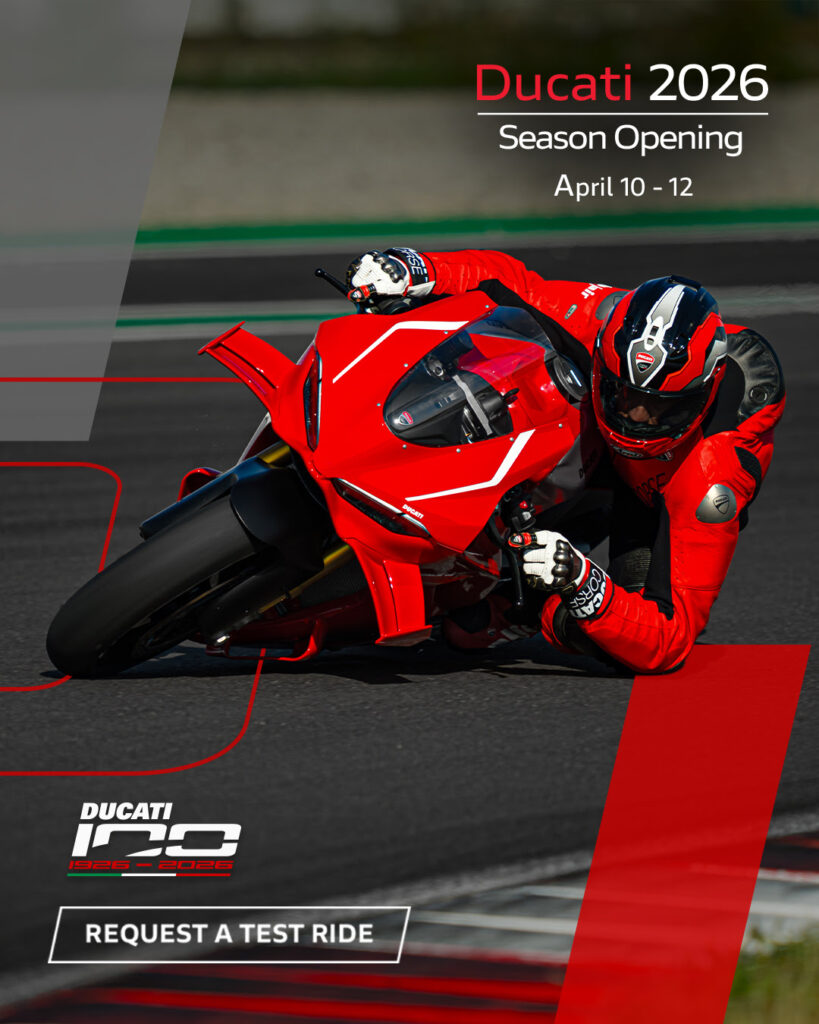 Dealers nationwide will be hosting the celebration welcoming the all-new 2026 Ducati lineup during Season Opening, inviting all Ducatisti to test-ride a selection of the 2026 lineup. Participating dealers will have Panigale V4 R, Monster, Diavel V4 RS and Multistrada V4 Rally demo units. “Enjoy entertainment and the exclusive chance to experience the innovative features of Ducati’s newest releases,” says Ducati’s marketing team.
