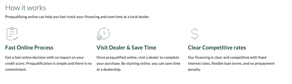 Simplified financing experience: Competitive financing options and a streamlined loan contract provide customers with clear payment choices and help dealers complete transactions efficiently.