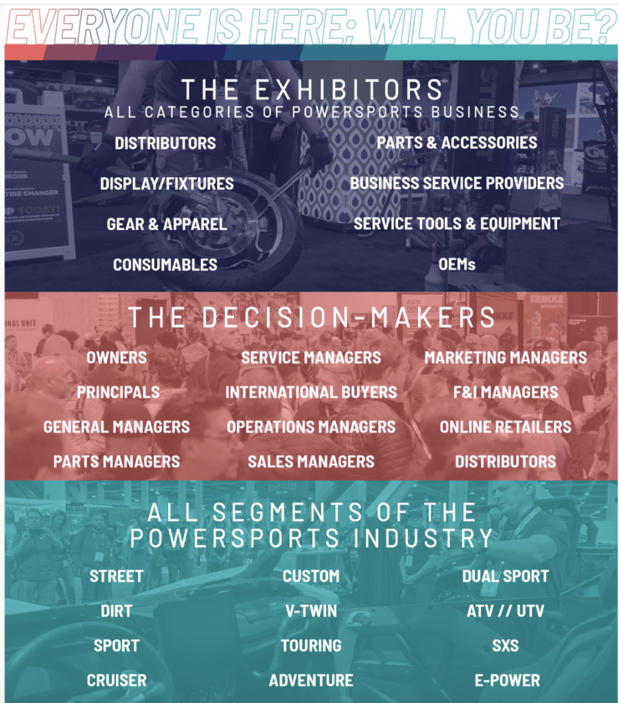 “At AIMExpo, you’ll be in the room with the decision makers, innovators, and influencers shaping the future of powersports. From dealers and brands to media and distributors — it’s the annual convergence of the entire powersports ecosystem,” she explains.